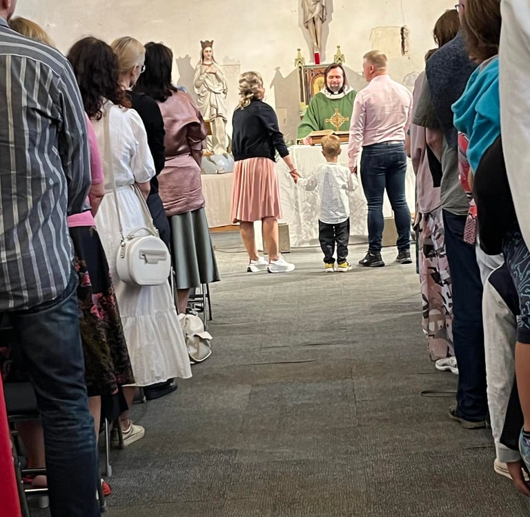 11:00 paliekame namus ir keliaujame į Širdžių bažnyčią. Aš keliauju į savo namus !!! Ten jaučiu paradinių durų rombelius, ten Aldonos Katilienės šypsena mane nukelia į močiučių glėbį. Pasiilgau... Ten pasitinkantys svetingumo savanoriai dovanoja meilės glėbį ir komplimentų laviną. Kiekvieną kartą ten stovintys žmonės tokie gražūs – spindi jų akys ir šypsenos.