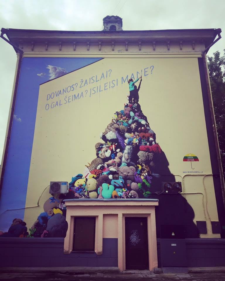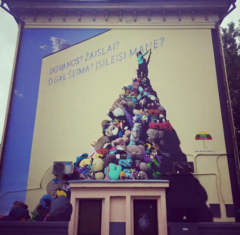 Naujamiestyje yra labai jautrus plakatas, vaizduojantis žaislų krūvą, ant kurios sėdintis vaikas klausia: „Šeima, kada įsileisi mane?“